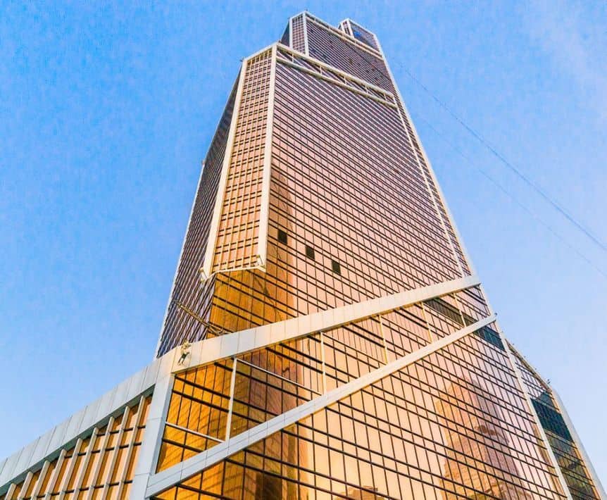 Строительство было начато в 2005 году, а в эксплуатацию небоскреб ввели в 2013-м. Высота вместе с антенной – 340 метров, а это 75 наземных этажей, 5 подземных и огромный паркинг.