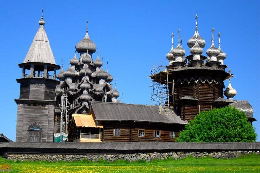 Кижи, Карелия. Архитектурный ансамбль Кижского погоста – это две уникальные деревянные церкви и колокольня.