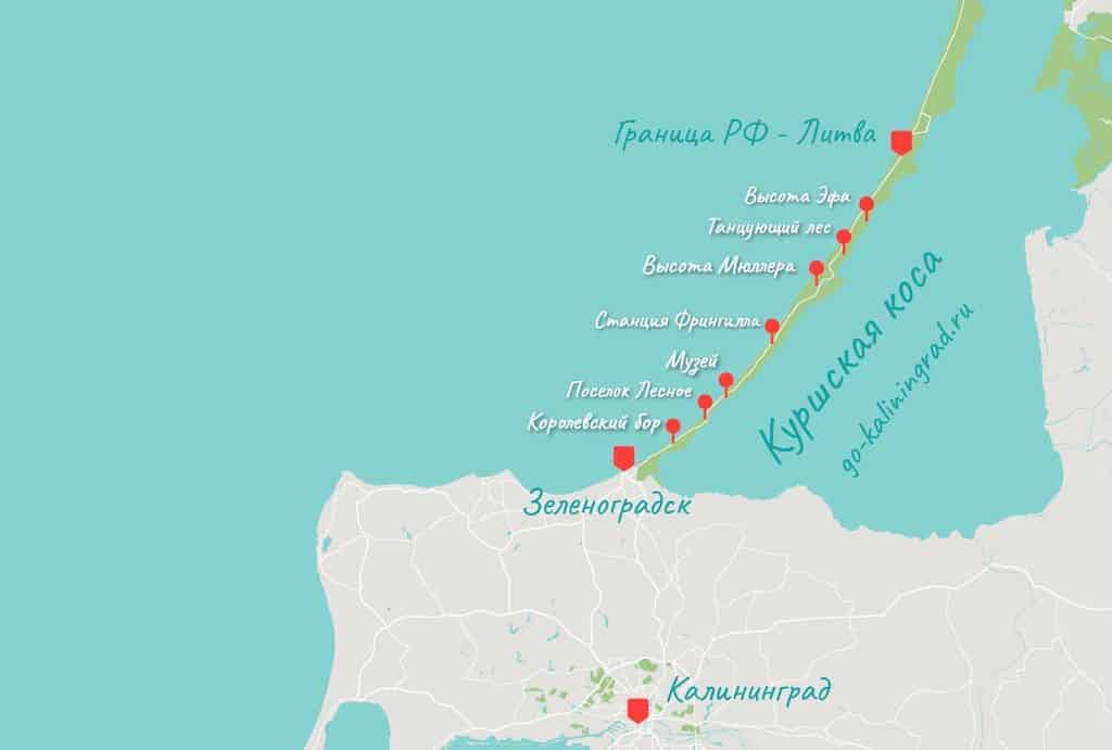 Куршская коса – это длинная песчаная пересыпь длиной 90 километров, а шириной всего от 400 метров! Это национальный парк и объект всемирного наследия Юнеско(которых в России не так много). Сюда едут за уникальной природой, белоснежными километровыми пляжами и дюнами. По всей косе проложены экотропы, такие как как “Танцующий лес” или “Высота Эфа”.