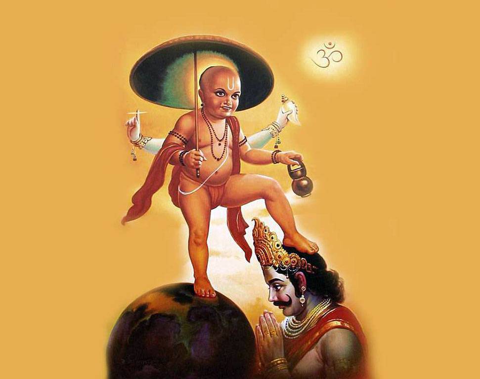 Однажды, в древние времена, на Земле жил очень могущественный царь демонов Бали Махараджа. Он был таким могучим воином, что захватил всю вселенную и даже райские планеты, на которых живут полубоги, обладающие большой силой. Мать полубогов, Адити, как и любая мать, пеклась о благополучии своих детей, поэтому она стала поклоняться Верховному Господу, чтобы тот вернул полубогам их царство. Она поклонялась Ему так усердно, что Он согласился стать ее сыном и спасти полубогов.