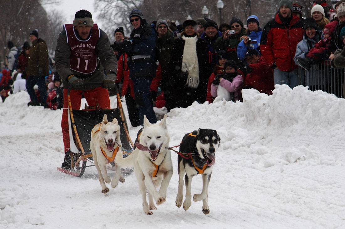 Катание на собачьих упряжках во время зимнего карнавала в Квебеке.