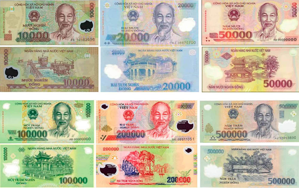 Официально денежная единица во Вьетнаме это вьетнамский донг. Он имеет код VND. Разменной денежной единицей является Хао — 1/10. В настоящее время в ходу купюры и монеты различного достоинства. Из купюр в обороте банкноты достоинством в: