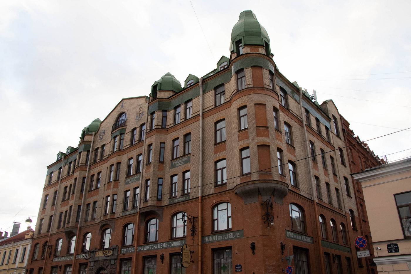 Историческая аптека, работавшая с XIX века. Считается, что её основатель доктор Пель проводил алхимические опыты и сотрудничал с Дмитрием Менделеевым. Это породило множество легенд об аптеке, например, что у неё есть подземелье с алхимическими препаратами, а башня грифонов во дворе исполняет желания. Сейчас в здании музей.