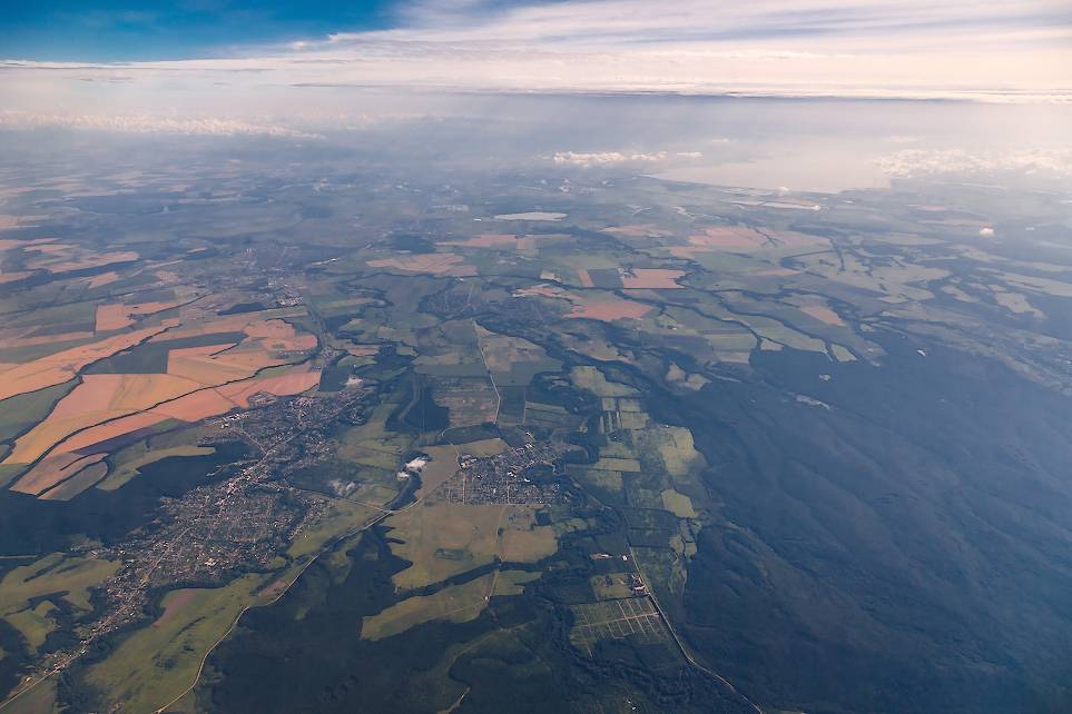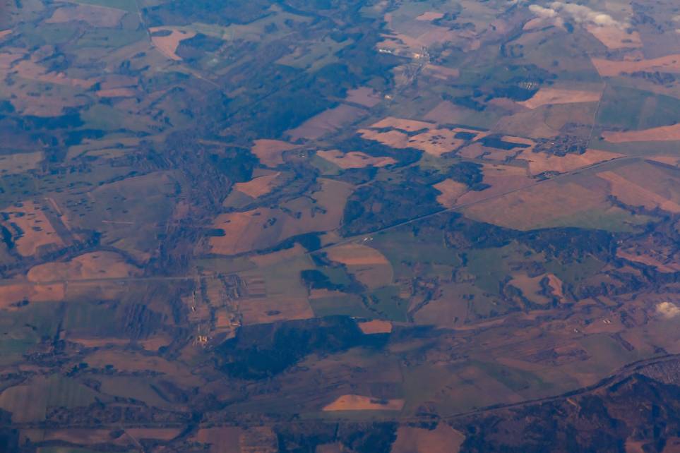 Ладно, думаю. В первый раз мне не повезло – ну это просто погода такая – не всегда же облака. Следующий раз когда я сел у окна – погода обещала быть нормальной, отлично думаю – полюбуюсь в окно. Ну и – как бы ни так. Пейзаж конечно за окном был какой-то, но интерес был сравним с разглядыванием фотографий гугл-мапс (причем фотографий не городов – это ещё куда ни шло, а всякие полей, заполняющих города) – лоскутное одеяло (преимущественно коричневых и зелёных оттенков), но тоже моментально надоедает: