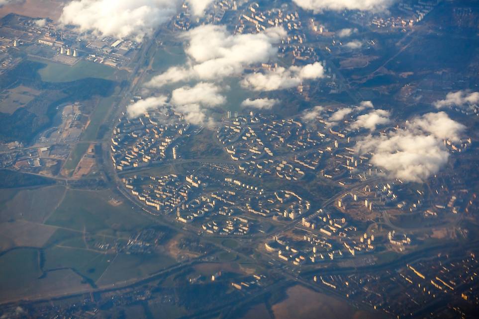 Вид из иллюминатора во время посадки