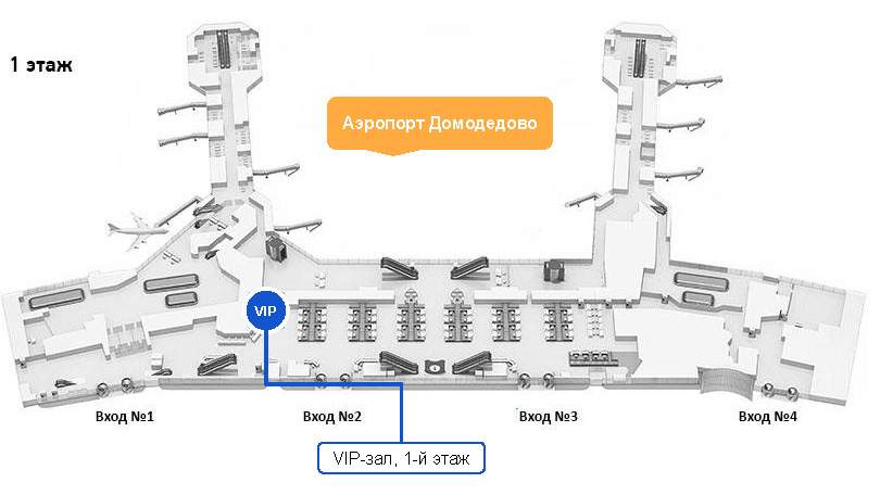 VIP зал в Домодедово только один. Зато он работает круглосуточно. Чтобы его найти, вам нужно пройти на первый этаж, в левое крыло общей зоны. В приоритете у него — обслуживание государственных делегаций, корпоративных клиентов и тех, кто заполнил заявку на VIP — обслуживание.