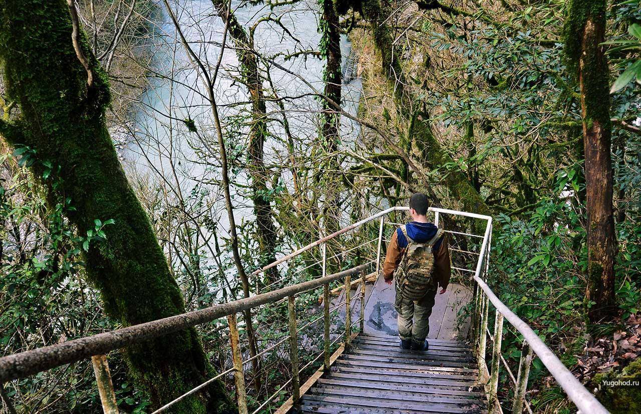 Чем же привлекла нас эта, если можно так выразиться «кемпинговая» достопримечательность? Оттуда начинается тропа в красивейшее место Сочинского национального парка — экопарк Ажек и мы не смогли устоять.