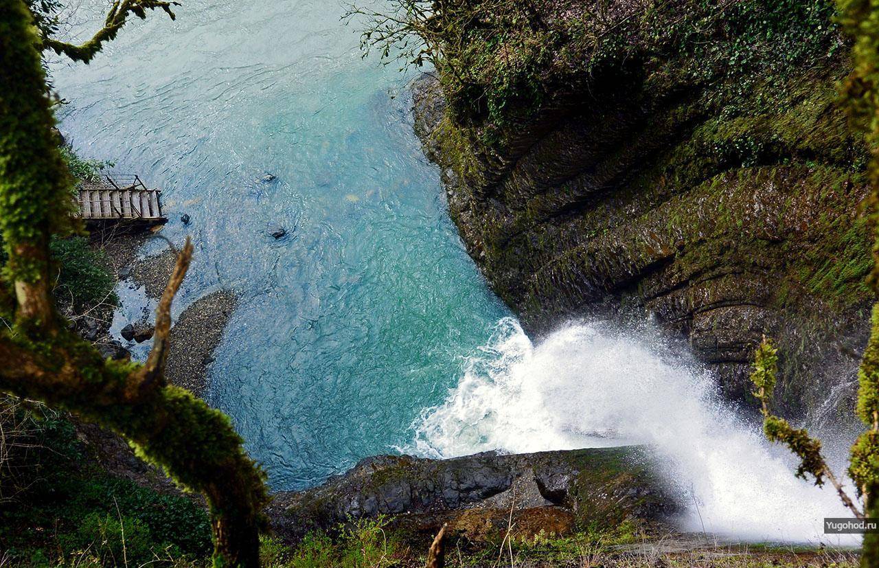 Чтобы не заблудиться, в качестве ориентира используйте посёлок Чвижепсе, миновав который через 3-4 км и будет упомянутый съезд. После небольшой прогулки по горной тропе вы очутитесь возле источника, вода которого ниспадает вниз с 13-метровой высоты, и, разбиваясь, устремляется к реке Мзымта.