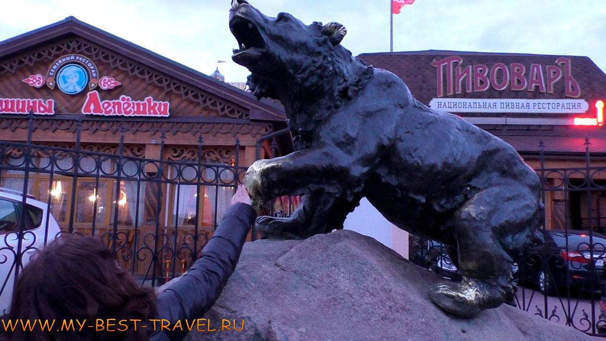 Замечательный памятник медведю можно найти на Первомайской улице у ресторана «Пивовар». Памятник установлен в 2009 году.
