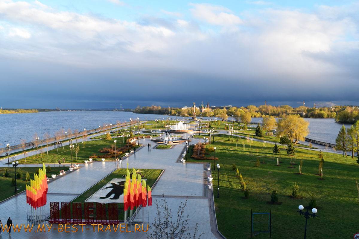 Двигаясь по Волжской набережной от Стрелки в сторону Речного вокзала, вы пройдете мимо нескольких прогулочных зон, в которых можно сделать остановку на отдых: Губернаторский сад (вход платный), Волжский бульвар с памятником Некрасову, Пятницкий парк.