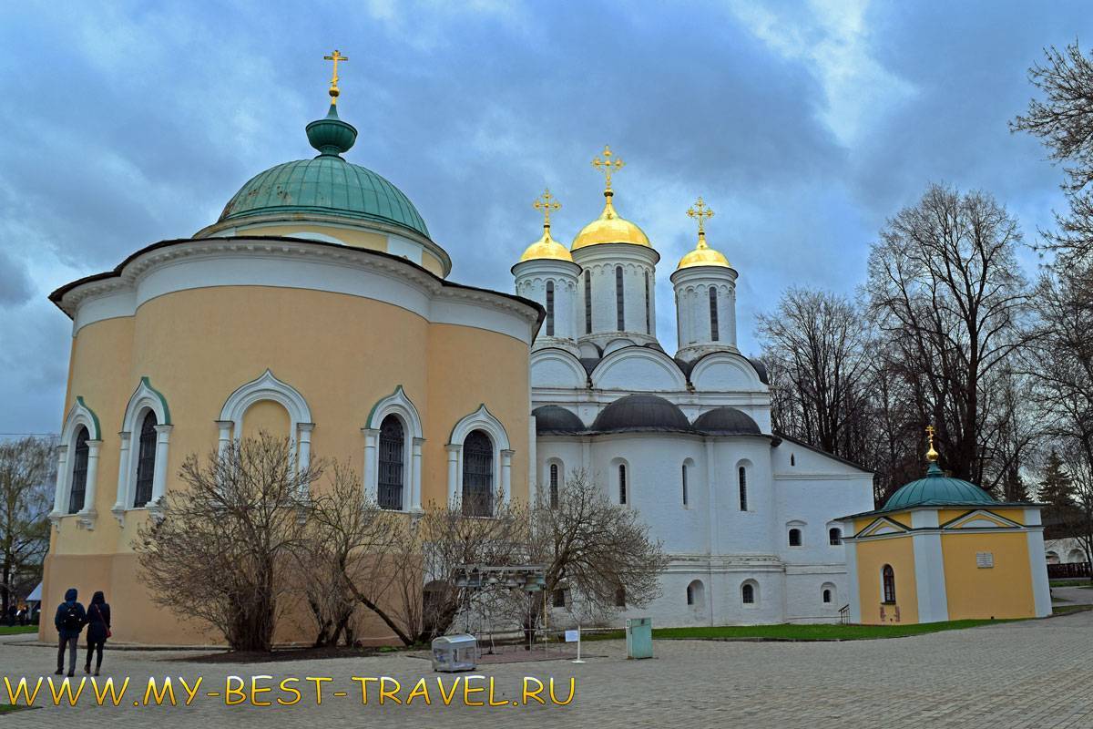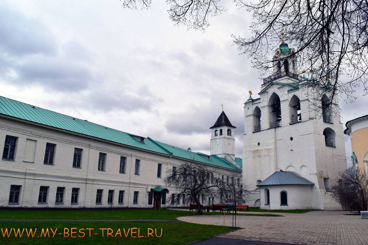 Вход в Ярославский музей-заповедник Спасо-Преображенского монастыря Конечно же, там обязательно нужно увидеть древнейший Спасо-Преображенский собор (Богоявленская пл., 25). Дошедшее до наших дней сооружение построено в начале 16 века на фундаменте прежнего сгоревшего собора. Строительство велось московскими мастерами, присланными Василием III, поэтому по очертаниям собор напоминает храмы Московского Кремля.