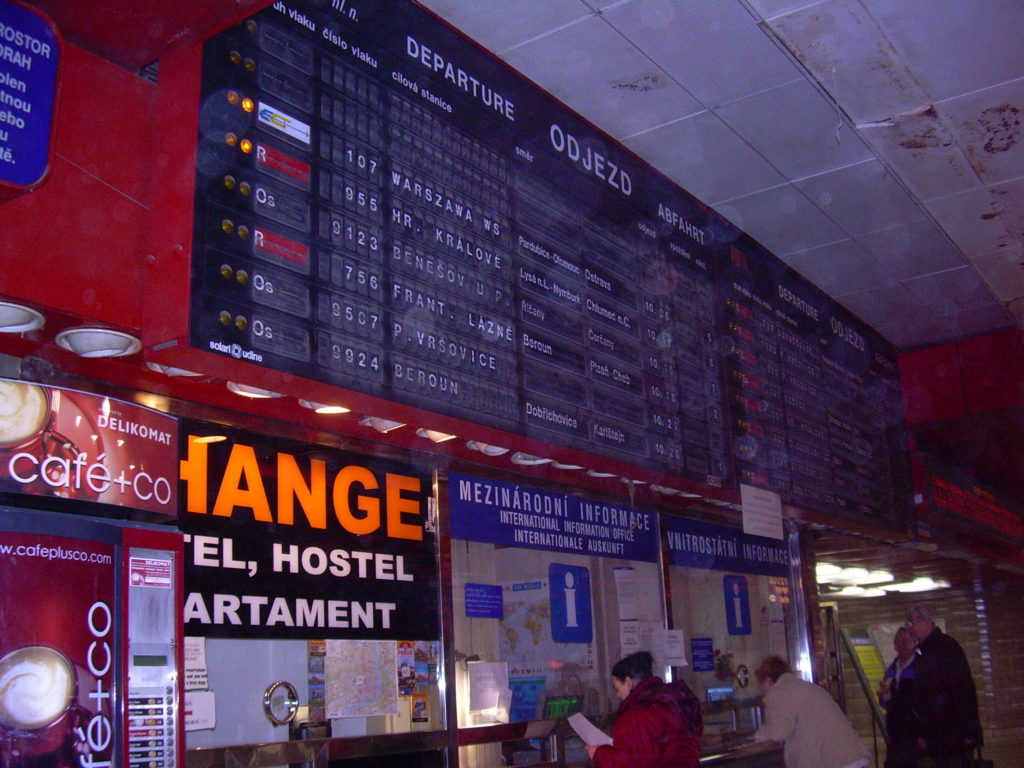 Самый очевидный «обилетиться» – пойти в кассу. Они расположены на первом этаже и легко отыскиваются, если следовать указателям, на которых написано Jízdenky (билеты). На кассах для международных рейсов написано Mezinárodní, на внутричешских – Vnitrostátní