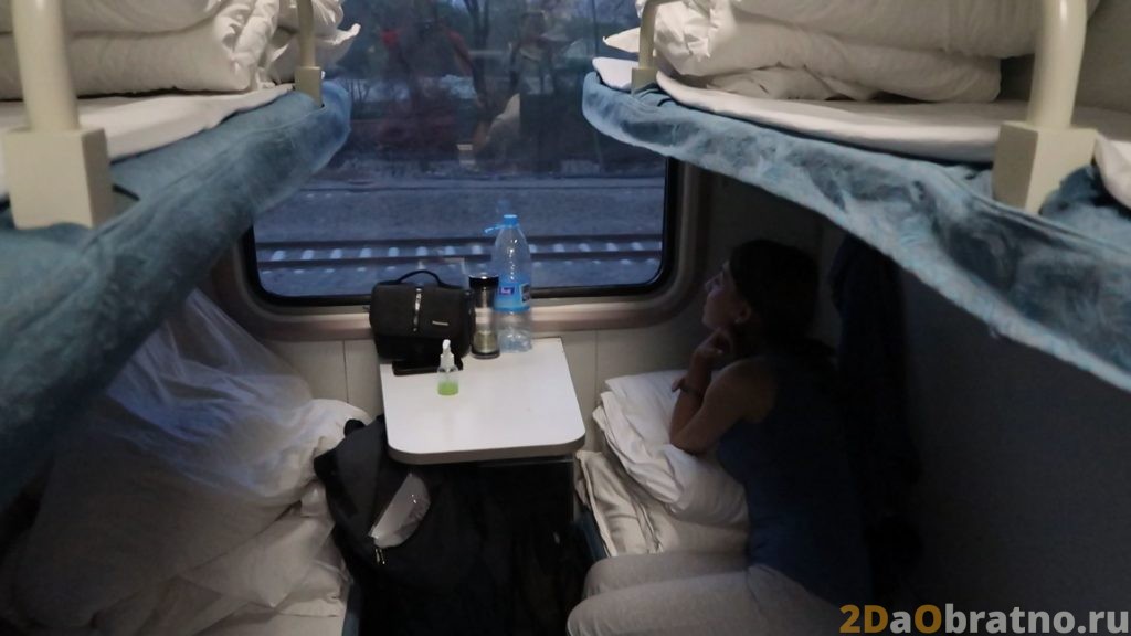В транспорте есть только спальные места. Они достаточно длинные — 195 см. При этом ноги человека будут упираться в ящик, который выполняет функцию столика для следующего пассажира.