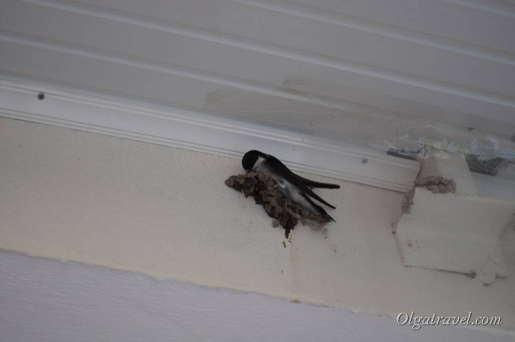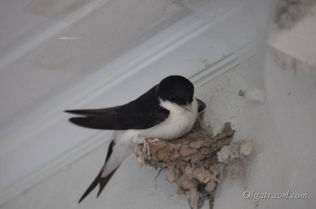 Возле каждого номера стульчики и столик, где можно отдохнуть и выпить турецкий чай с видом на гору. А еще под крышей у нас жили птички