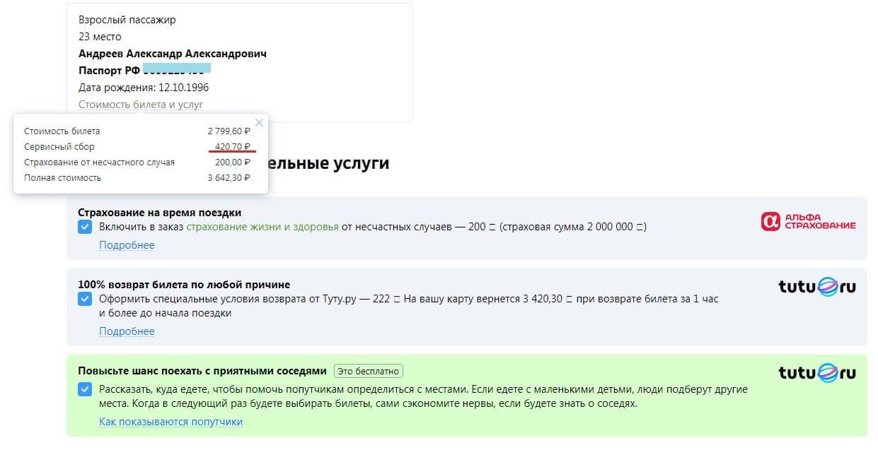 Кроме того, свое комиссионное вознаграждение есть и у РЖД. Оно составляет 2,30 руб. за каждое пассажирское место.