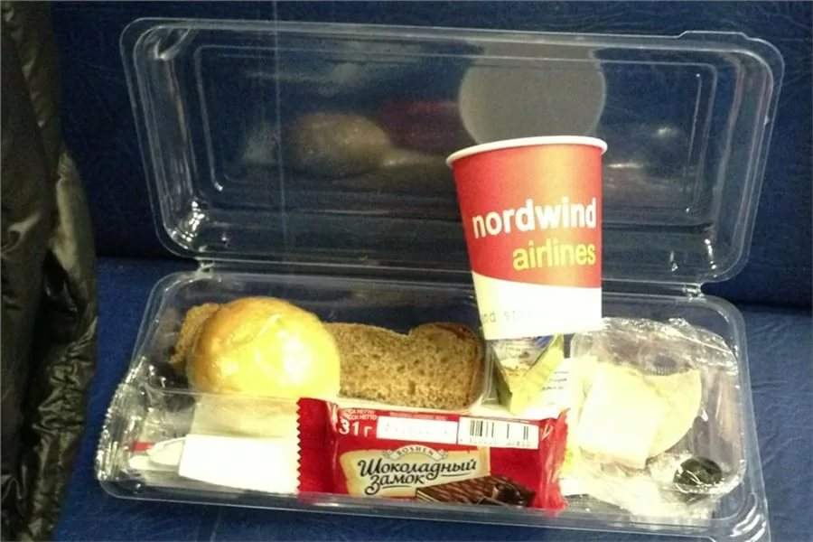 При бронировании билета на официальном сайте NordWind Airlines можно заранее выбрать блюда и напитки. Питание в стоимость не входит, поэтому его покупают отдельно. Оно обходится недорого. Пассажиры отмечают, что еда подается в экологически чистой упаковке, но, судя по отзывам, скромная и невкусная. Предлагаются безалкогольные напитки, чай или кофе, а также сендвичи, булочки, батончики мюсли.