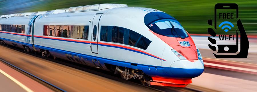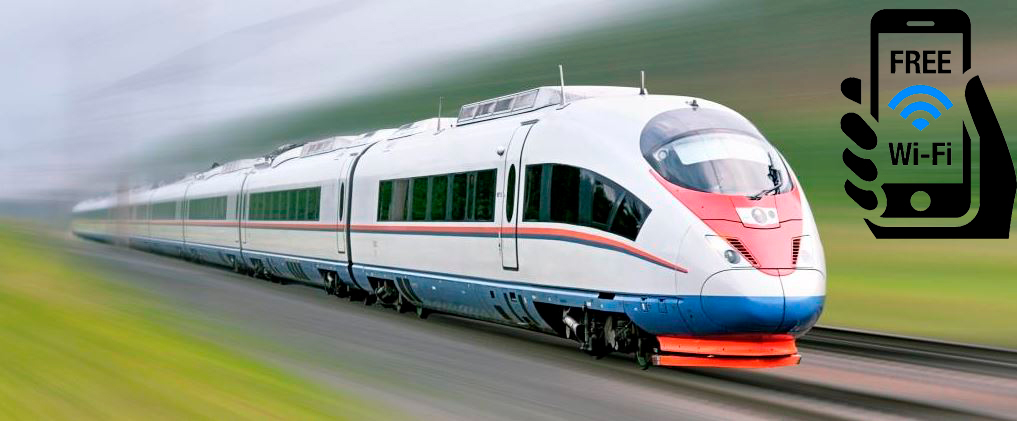 Впервые вай-фай на транспорте железных дорог установили в поездах компании АО «РЖД» в 2015 году. Тогда беспроводную сесть внедрили на «Сапсанах», выполнявших междугородние рейсы внутри России. Позднее она стала появляться также в других электропоездах, включая фирменные, купейные из категории дальнего следования, плацкартные и даже пригородные, оборудованные только сидячими местами.