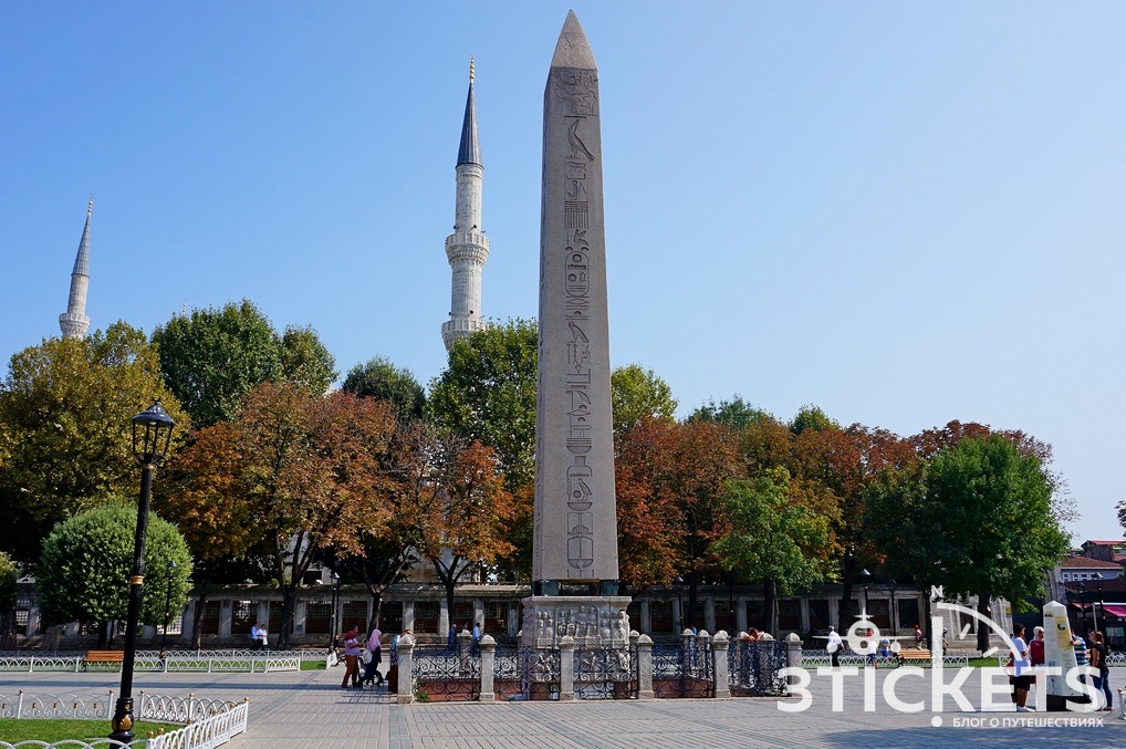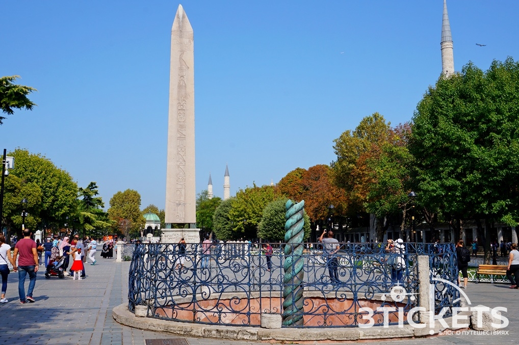 Недалеко возвышается Египетский обелиск или Обелиск Феодосия. Считается самой старой постройкой в Стамбуле. Он был сконструирован в XVI веке до н. э., а в Константинополь был привезен из Луксора в 390 году.