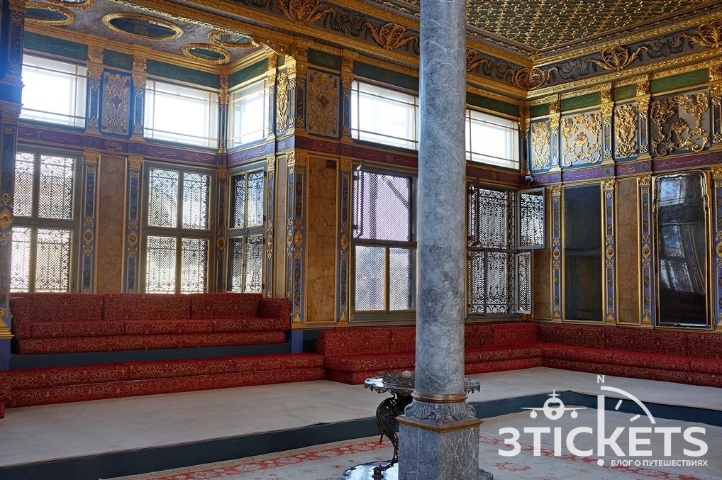 Он состоял из трехсот комнат, нескольких ванных, кухонь, мечетей, виноделен и лазарета. Здесь проживало около тысячи женщин, в том числе королева — мать, фавориты султана, бывшие жены, давшие ему сыновей, а кроме того медсестры, портные, музыканты, танцоры и евнухи — единственные люди, которым разрешался вход в гарем.