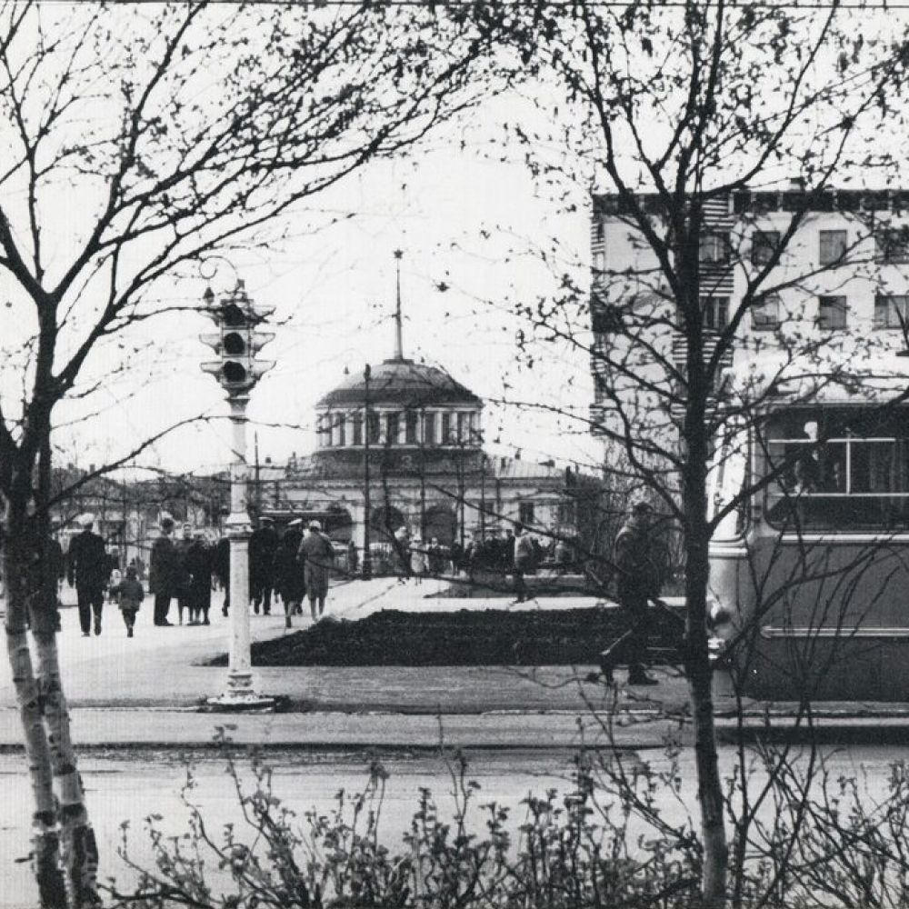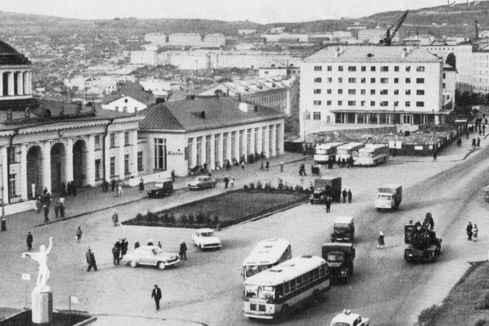 Фото: Площадь перед железнодорожным вокзалом, 1965 г., С.Майстерман, из фотоальбома “Мурманск”