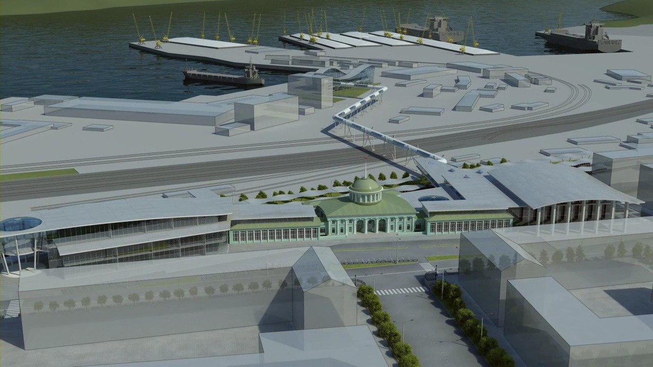 Станция включает 15 путей, 4 из которых являются пассажирскими. По другим к Морскому вокзалу доставляют разнообразный груз. Чтобы пройти к посадочной платформе, которая расположена ниже здания вокзала, необходимо пройти через мост-переход. Рядом с жд вокзалом находятся еще 2 транспортных объекта — автовокзал и морской вокзал.