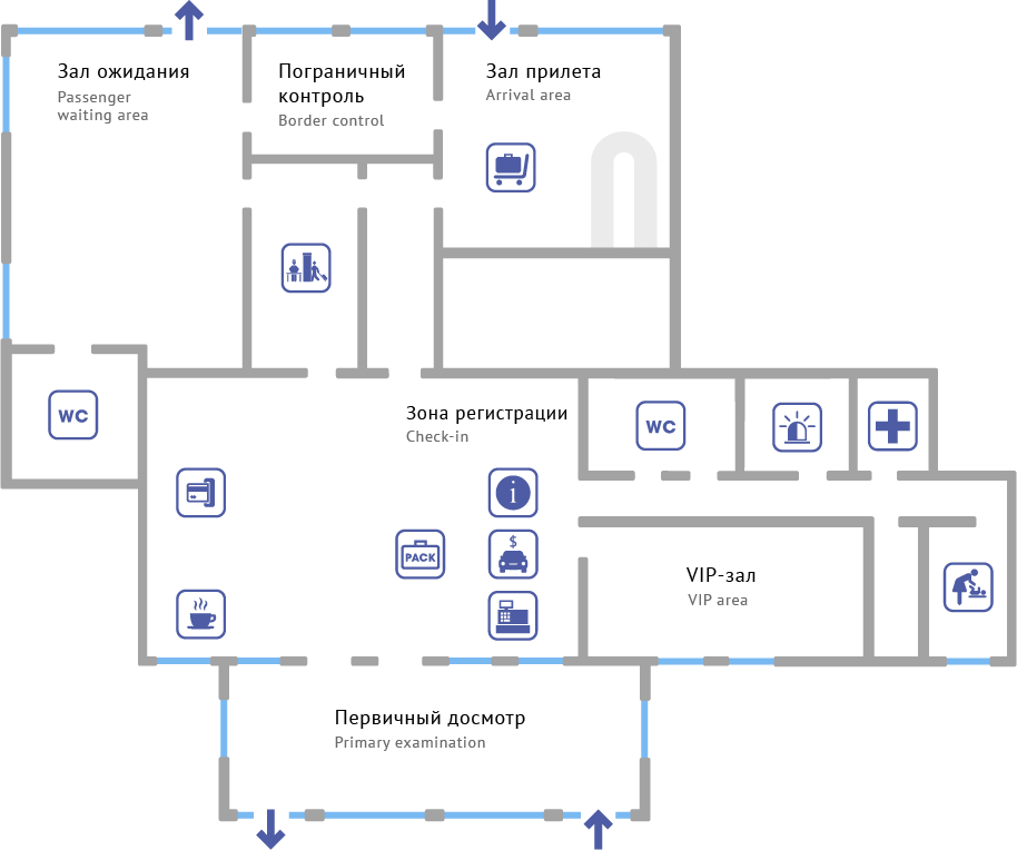 Рассмотрим подробнее схему аэропорта Калуги «Грабцево», чтобы понять, как функционируют его основные сервисы для пассажиров.