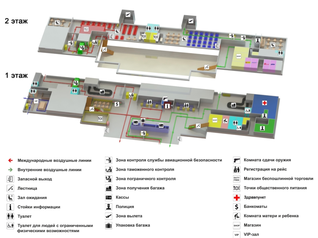 Инфраструктура аэропорта хорошо развита, что позволяет пассажирам пользоваться множеством услуг и путешествовать с комфортом. На территории здания аэровокзала можно найти: