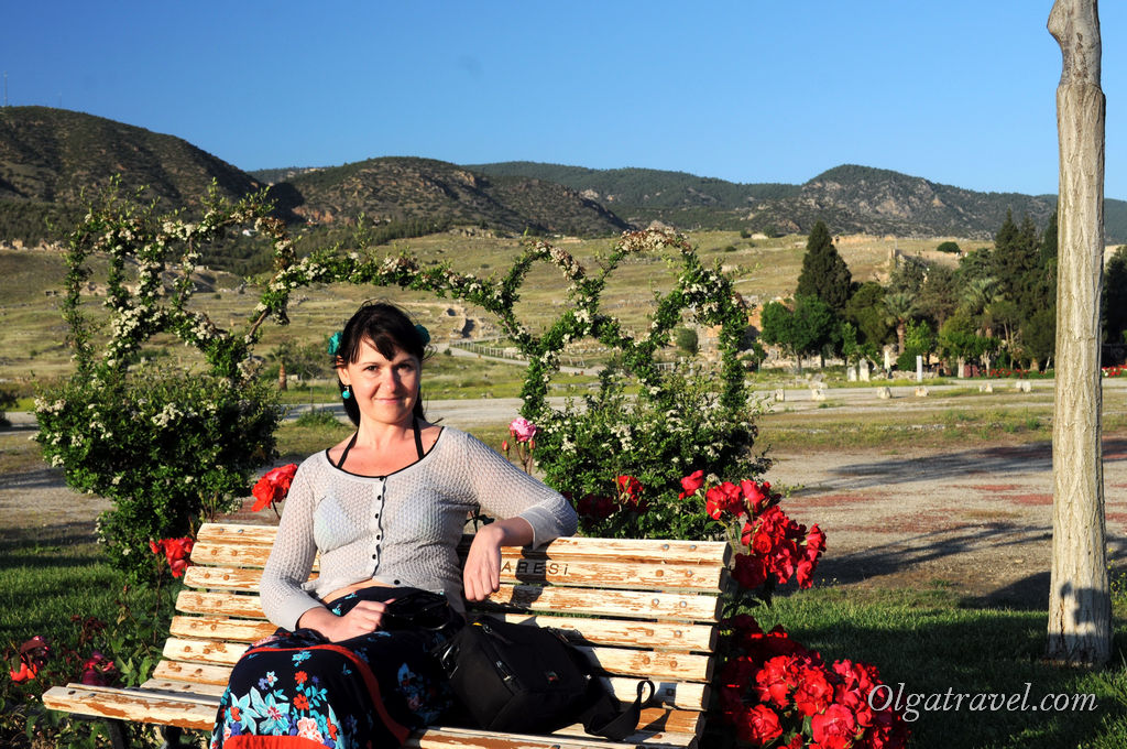 Целебные свойства минеральных вод Памуккале известны с очень давних времен. Еще в античные времена здесь образовался СПА комплекс. На месте римских бань соорудили даже бассейн, где купалась сама царица Клеопатра. Вода в нем круглый год около +36 градусов. Говорят, что искупавшись в этом бассейне люди чувствуют себя заново родившимися! В бассейне Клеопатры всегда многолюдно. Мы купаться в нем не планировали, мы уже насладились теплыми почти безлюдными бассейнами с минеральной водой в термах Султание возле Дальяна.