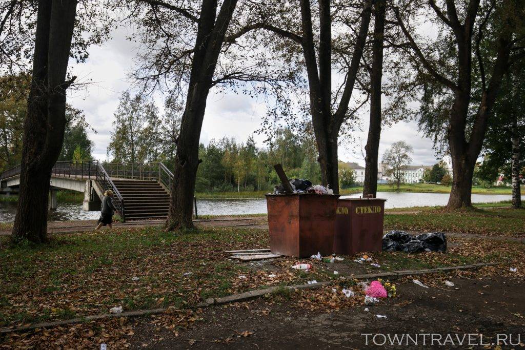 А еще мусор… Да-да, автор ходил и специально выискивал При всем моем желании любоваться исключительно достопримечательностями Вышнего Волочка, очень сложно пройти молча мимо таких хаотичных свалок. Ну как можно было поставить такие мерзкие баки прямо перед пешеходным мостом? И эти кочующие мусорные свалки ежегодно появляются по городу в разных местах. К сожалению, даже не приходится их выискивать. Ты просто гуляешь и вдруг неожиданно замечаешь, что стоишь посреди помойки.