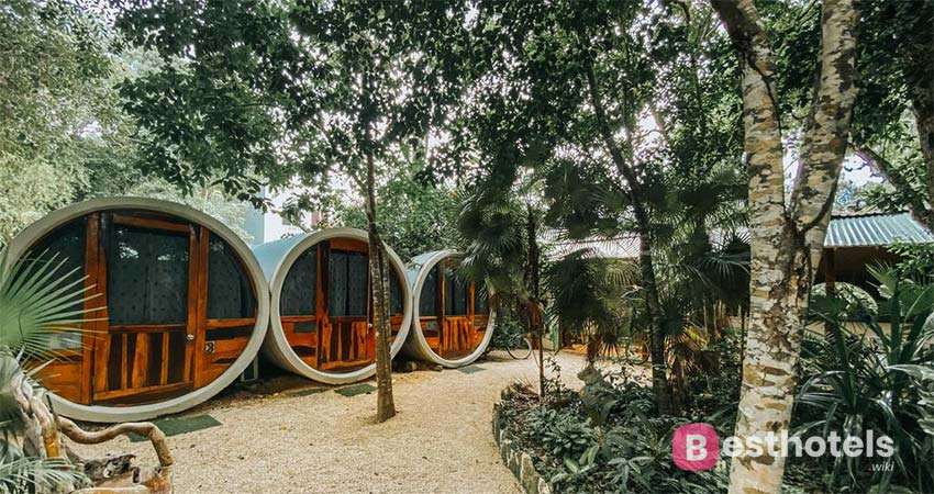 Курьезный хостел имеет сооружения, сделанное согласно всем экологическим стандартам. Все нестандартные двадцать номеров, которые находиться всего в одном часе езды от Мехико располагаются во внутренностях сточных труб. Во всех комнатах имеется электричество. Оконные проемы для естественного освещения в светлое время и даже небольшой шкаф, который расположен под кроватью. В отдельно оснащенных ванных комнатах имеются туалеты с раковинами и душем. Расположения хостела среди тропического сада позволяет постояльцам самим наслаждаться приготовлением кулинарных шедевров на комфортабельной большущий кухне. Но лучше стоит запастись продуктами заранее. Ближайшие продуктовые магазины находиться не близко.