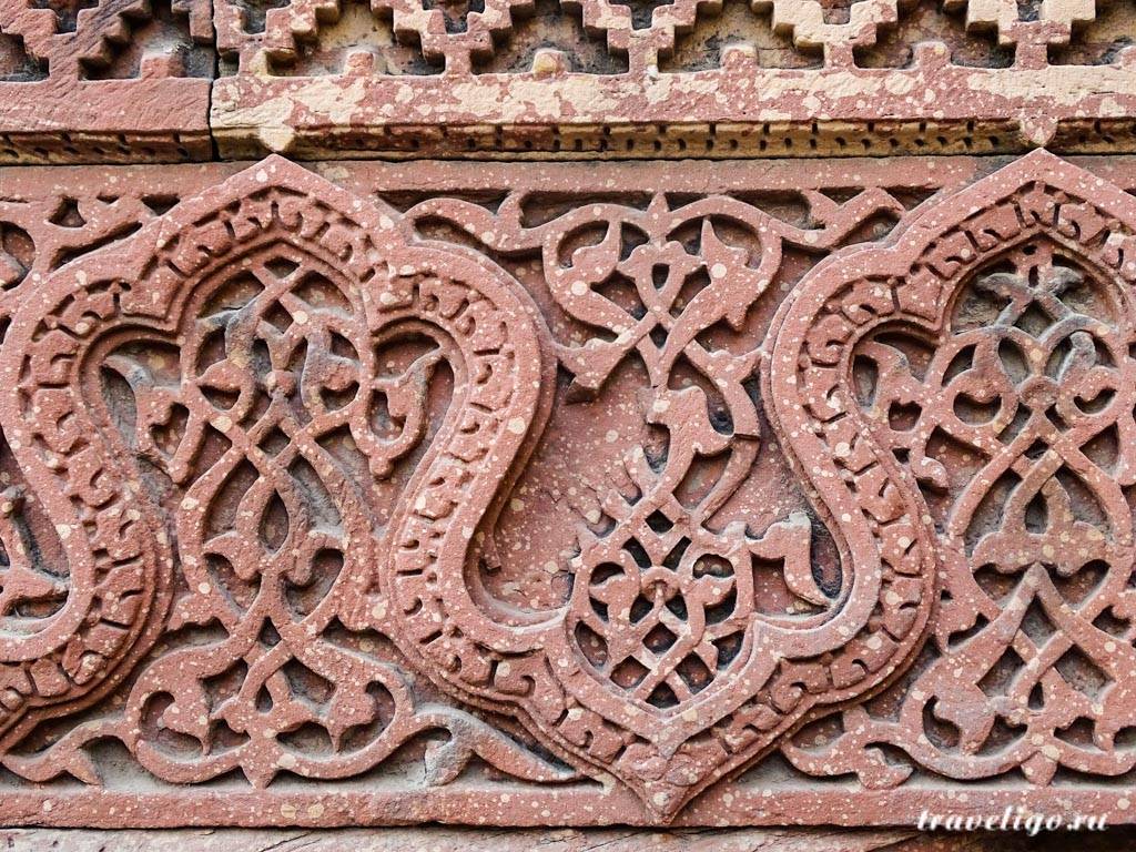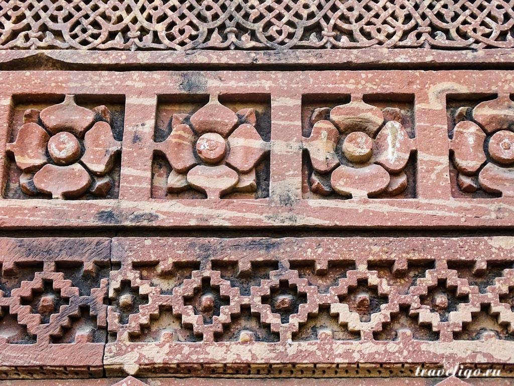Как нам сказал гид: «Первый ярус Кутб-Минар построил в конце XII века князь Чаухан для своей дочери, чтобы та с высоты любовалась прекрасными видами берегов чудесной реки Ямуны. Но уже через несколько лет мусульманский властелин Айбек изменил внешний вид башни. Башня тогда и получила название, дошедшее через века до нас — Кутб Минар. Затем уже его потомки достраивали Кутб-Минар. В 1370 году император Туглак наконец-то закончил строительство, завершив последние IV и V ярус, тем и прославился в истории. И вот перед нами это величественное сооружение — башня Кутб-Минар, дошедшая до наших времен. Представьте себе высоту двух 9 этажных домов, поставленных друг на друга. Так вот, его высота составляет 72,6 метра, диаметр основания 14 метров, а диаметр вершины около 3 метров.